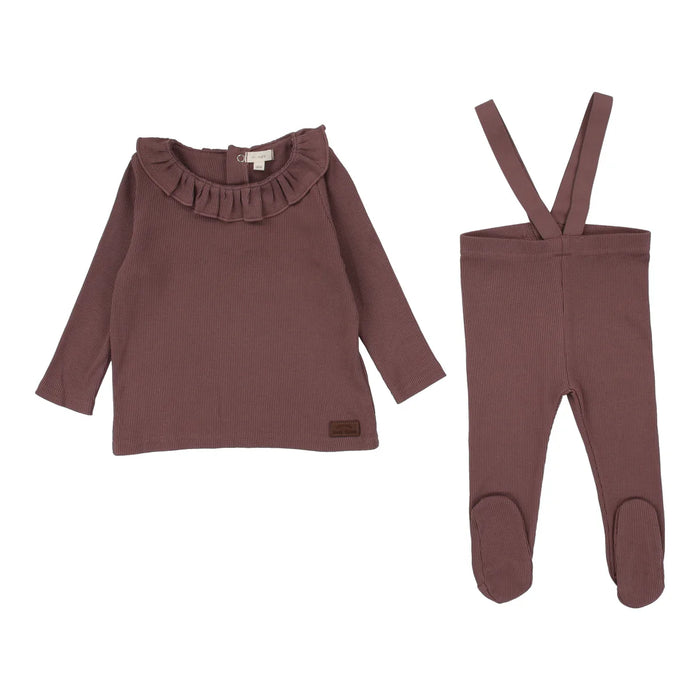 Ruffle Collar Ribbed Set Dusty Plum