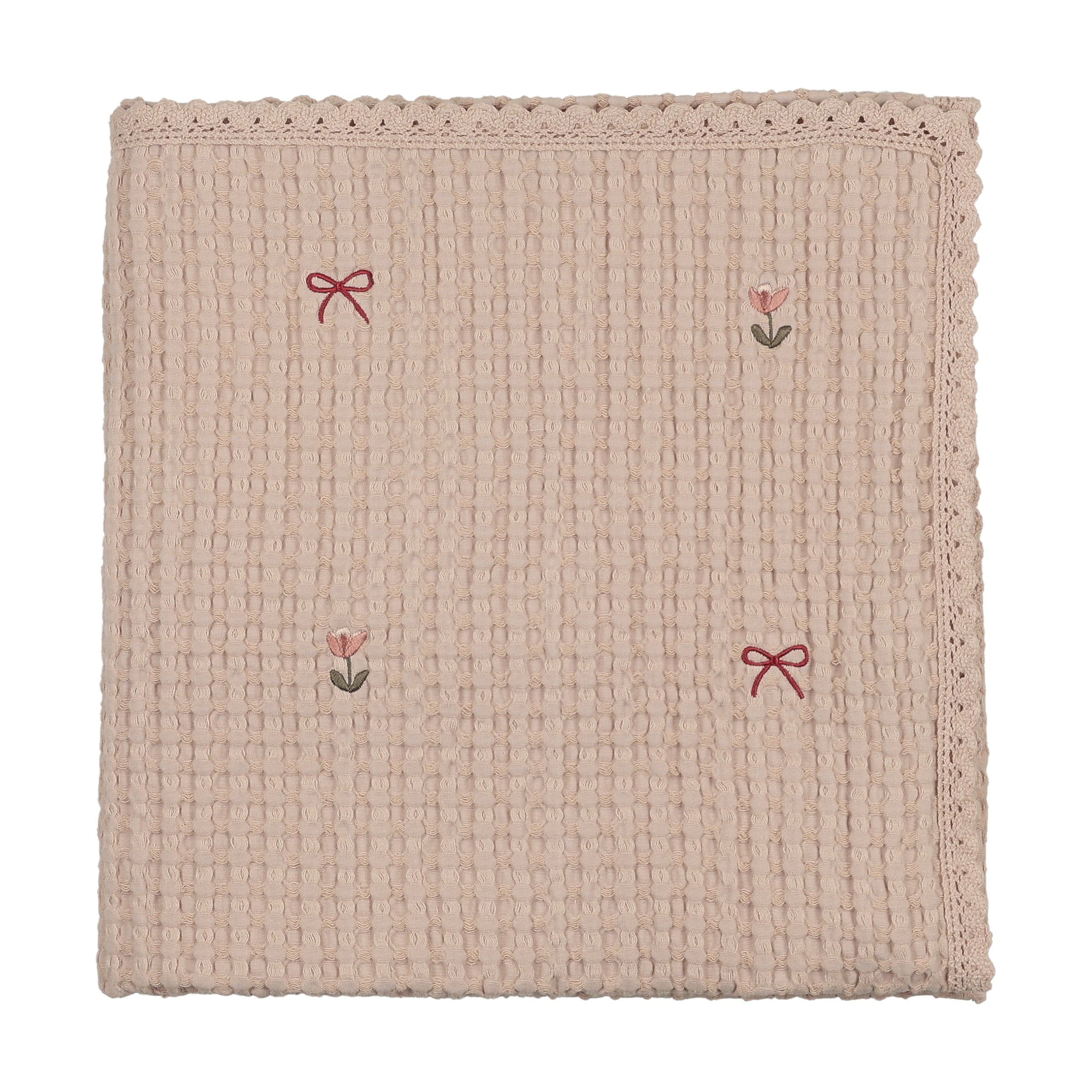 Tulips & Bows Embroidered Waffle Blanket